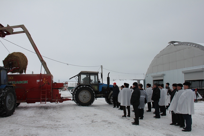 Candidate of agricultural sciences, associate professor of the department Agricultural machines of Belarusian State Agrarian Technological University (BSATU) Alexandr Mikhailovich Lapotko shared with the guests the experience of the development of modern methods of feeding of cattle and ration of high quality forage meeting the requirements of the physiological needs of animals and increasing productivity of milk herd. Then the participants to the delegation saw the procedures of preparation of four-component mixtures in forage mixer-dispenser KRG-17.