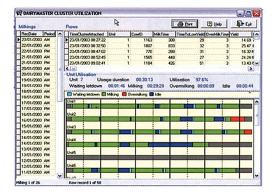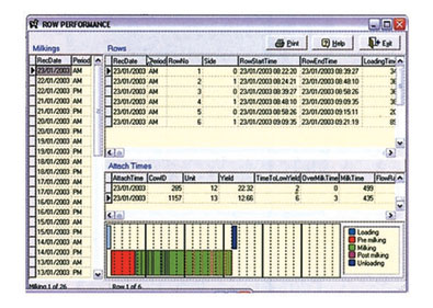 During milking the management program monitors and controls the status of each cow. Milk yield, milking duration, and rate of milk flow are just a few of analytical data that are collected and stored in the system. This data can then be viewed and analyzed using the program "Herd Management".