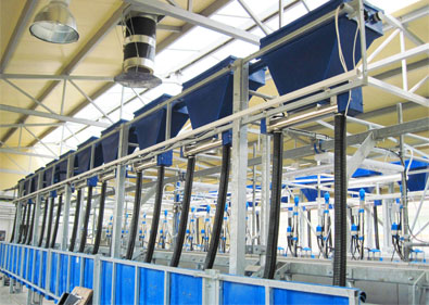 Each motor integrates overload relay activated in case of foreign matter. Dispenser tubing is clamped with double brackets of stainless steel and special vibration construction. Dispenser is loaded from cochlea and forage hopper. Sealed frame eliminates dusting and rodents. Digit panel controls up to 40 meters. Feeding is either individual or grouped. Color codes help to identify easily and quickly feed concentrates for individual ration. Calibration of the system takes maximum 2 minutes.