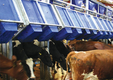 Their unique feature is the ability to install a feeding system that allows you to organize individual feeding of each cow. In this case, the troughs are pushed forward and rise together with stalls, providing exit for the cows.