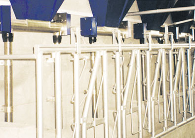 Galvanized hand-driven system of bars for head fixation, part of the basic set of equipment, is right for feeding and provides secure fixing of the cow in position.